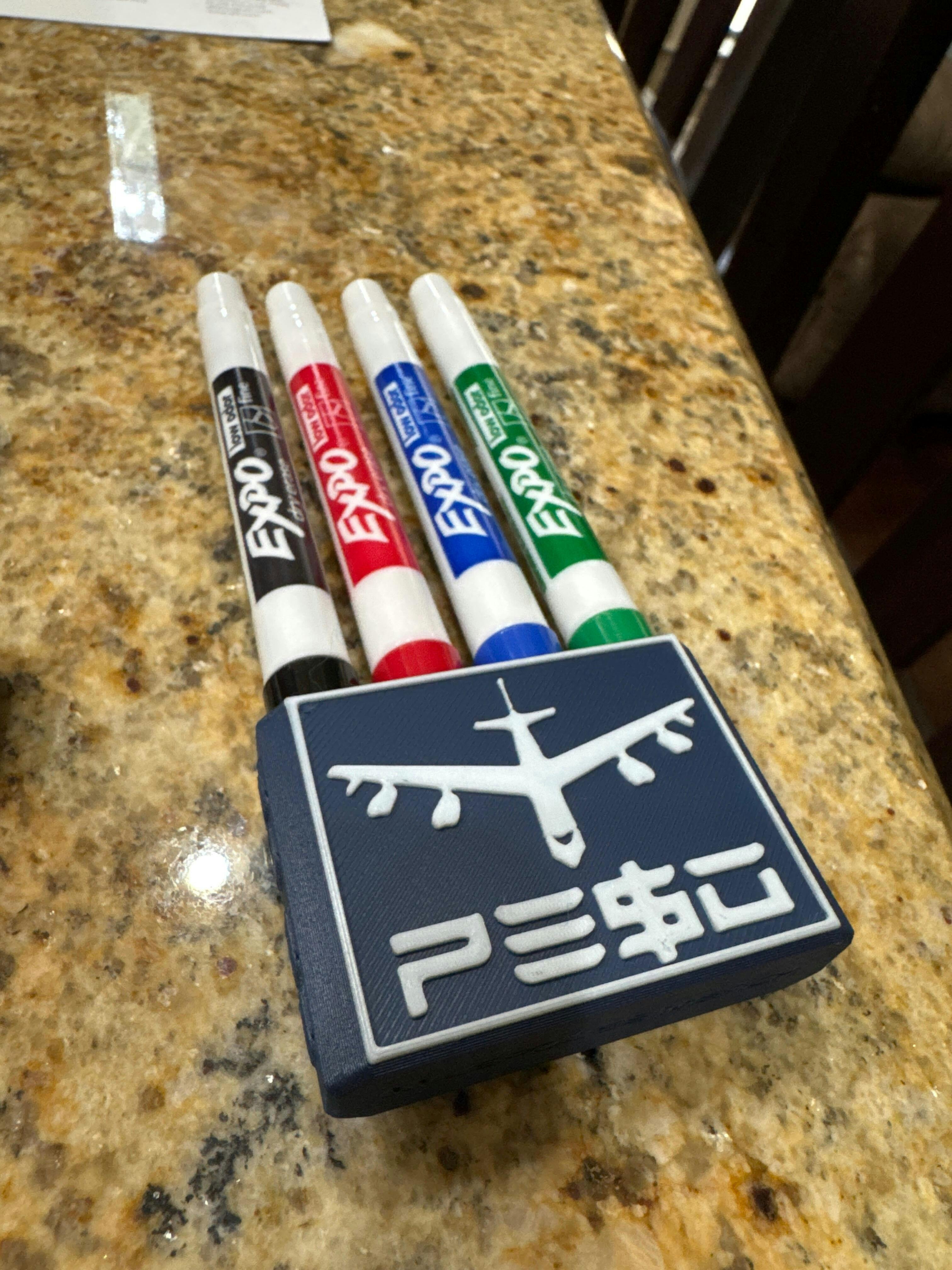 These are custom designed to your specifications and 3D printed out of durable plastic. The colors, callsign, jet, number of markers, and text on the left and right side of the marker holder can be customized.